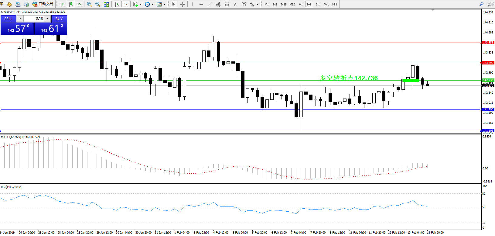 交易策略:142.736下方看跌,目标141.790、141.103