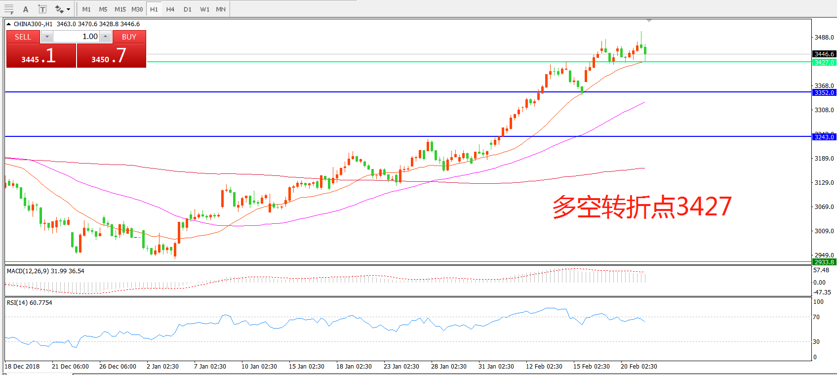 多空转折点:3427.00