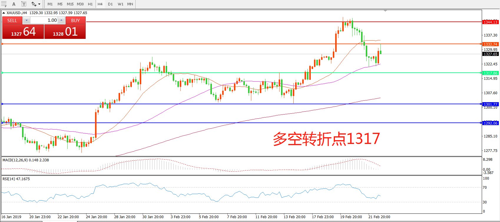 多空转折点:1317.00