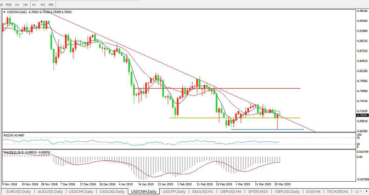 美元兑人民币USDCNH 日线图: