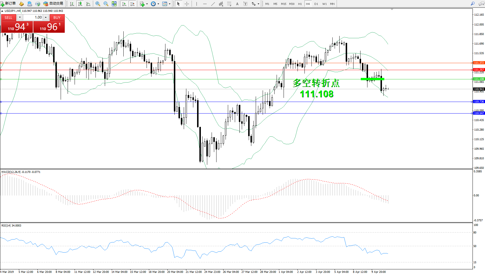 交易策略:111.108下方看跌,目标110.736110.547