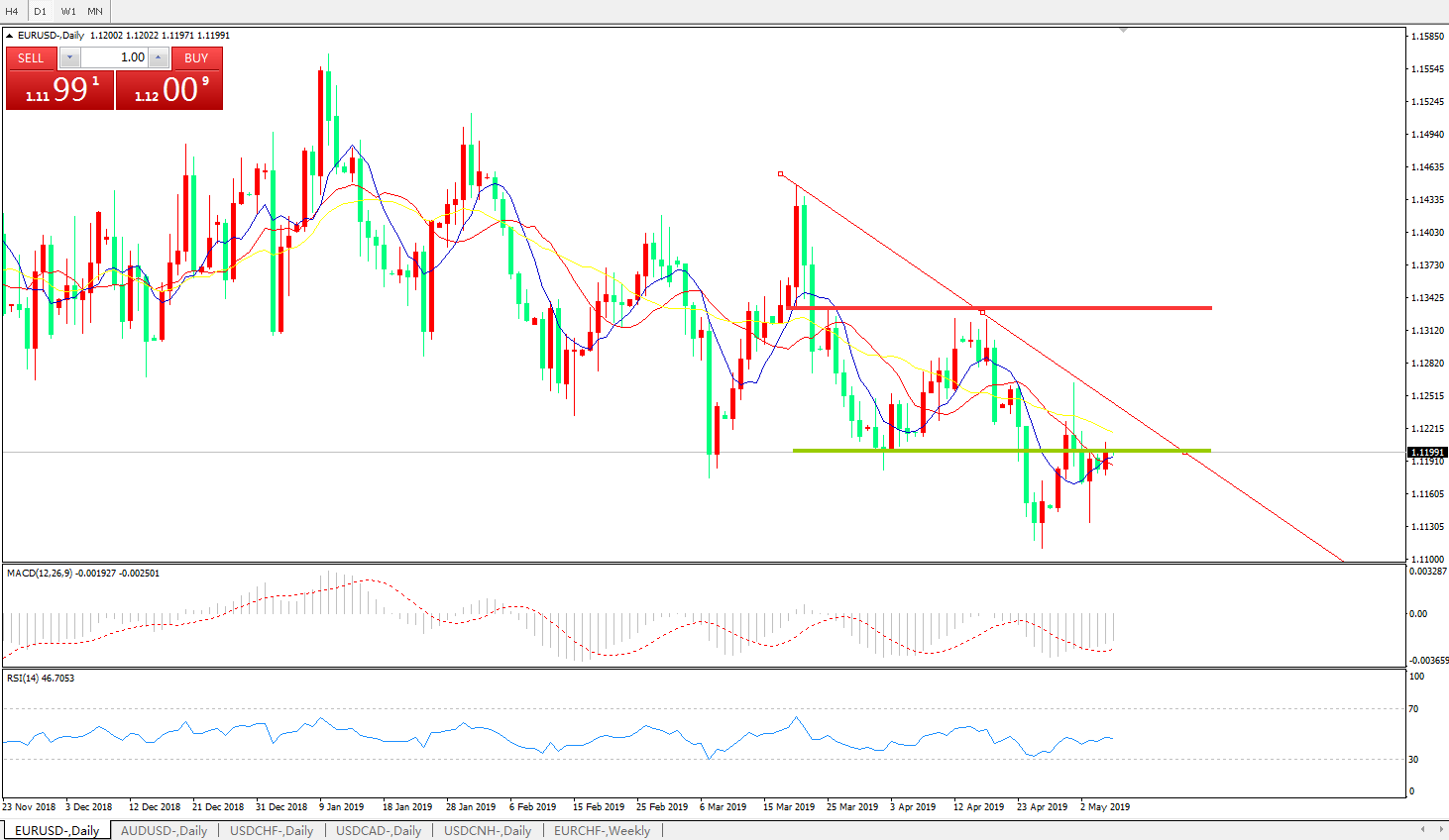 交易策略:在1.1200之下,看跌,目标价位为 1.1100,然后为1 .1030。