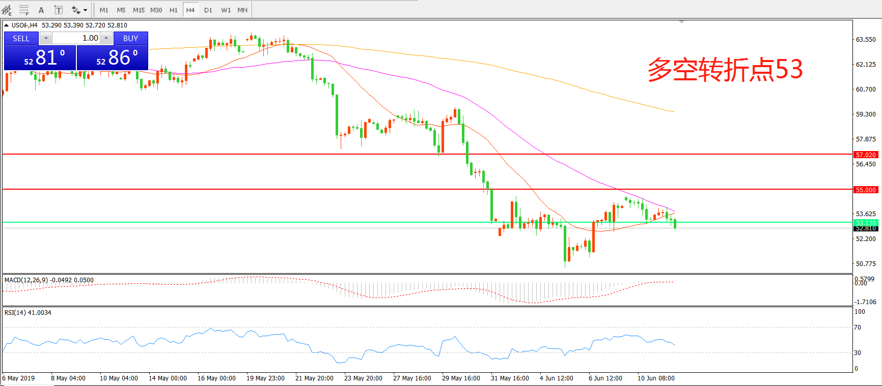 交易策略:在53.00之下看跌,目标50.00 46.00