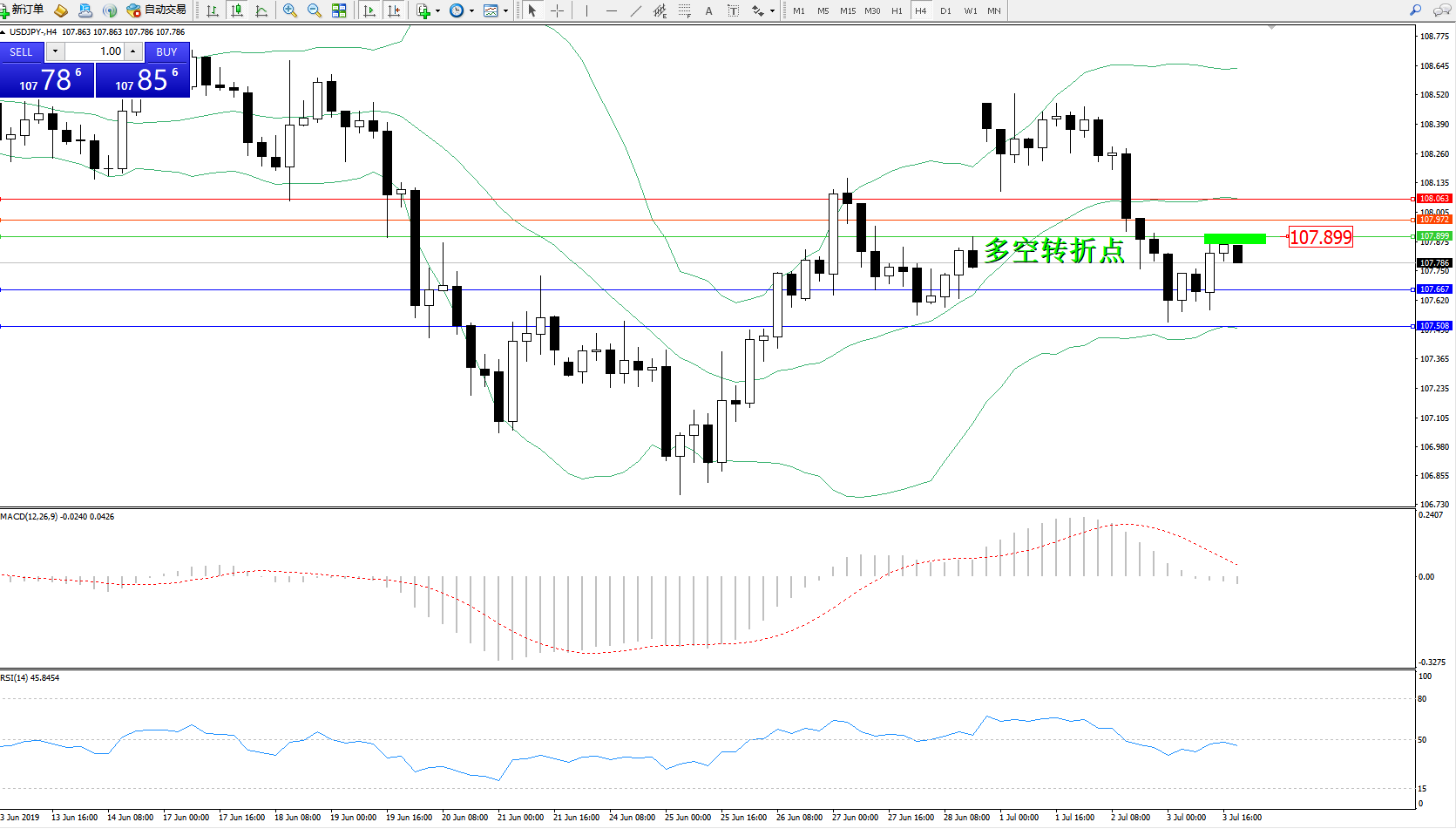 交易策略:107.899下方看跌,目标107.667107.508