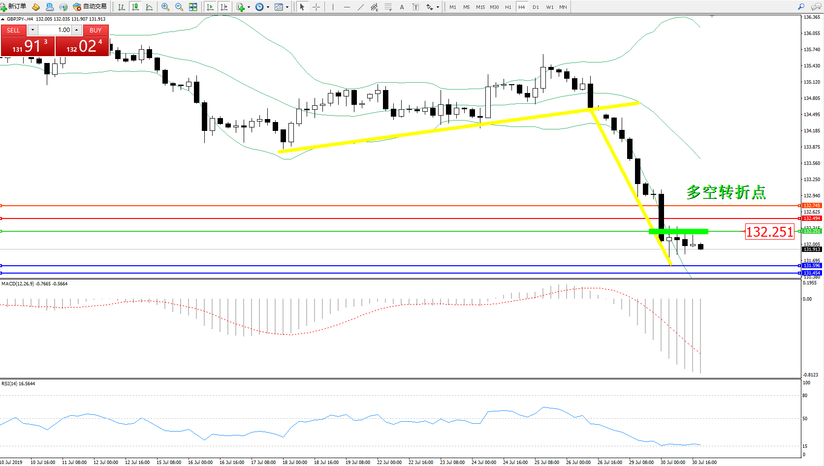 交易策略:132.251下方看跌,目标131.596、131.454