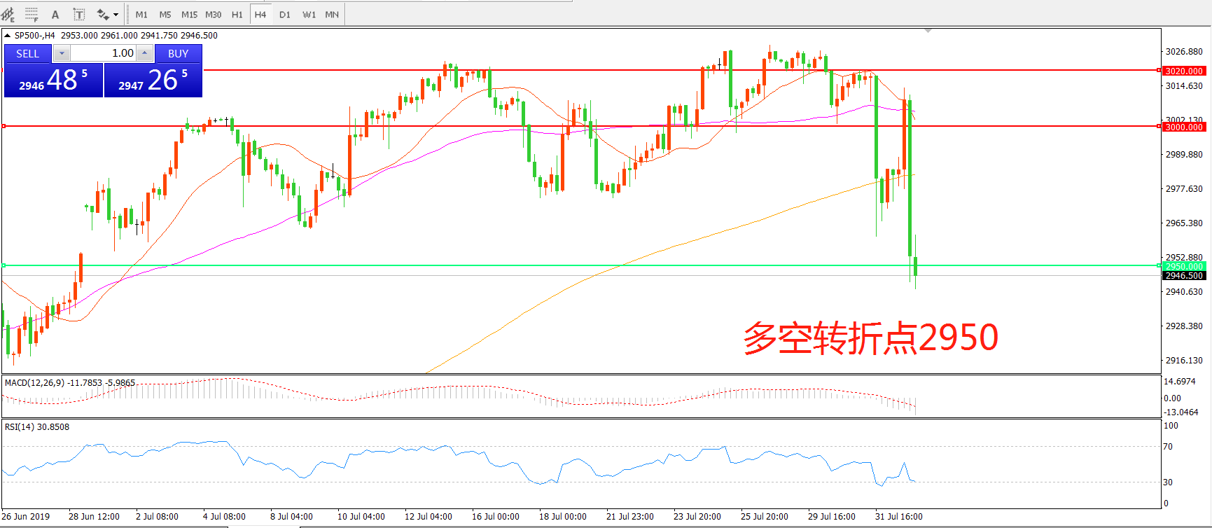 多空转折点:2950.00