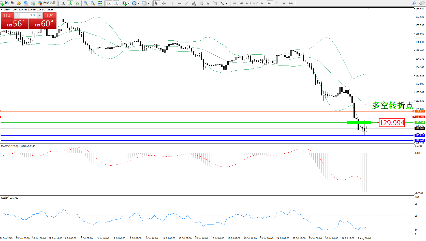 交易策略:129.994下方看跌,目标129.013、128.642