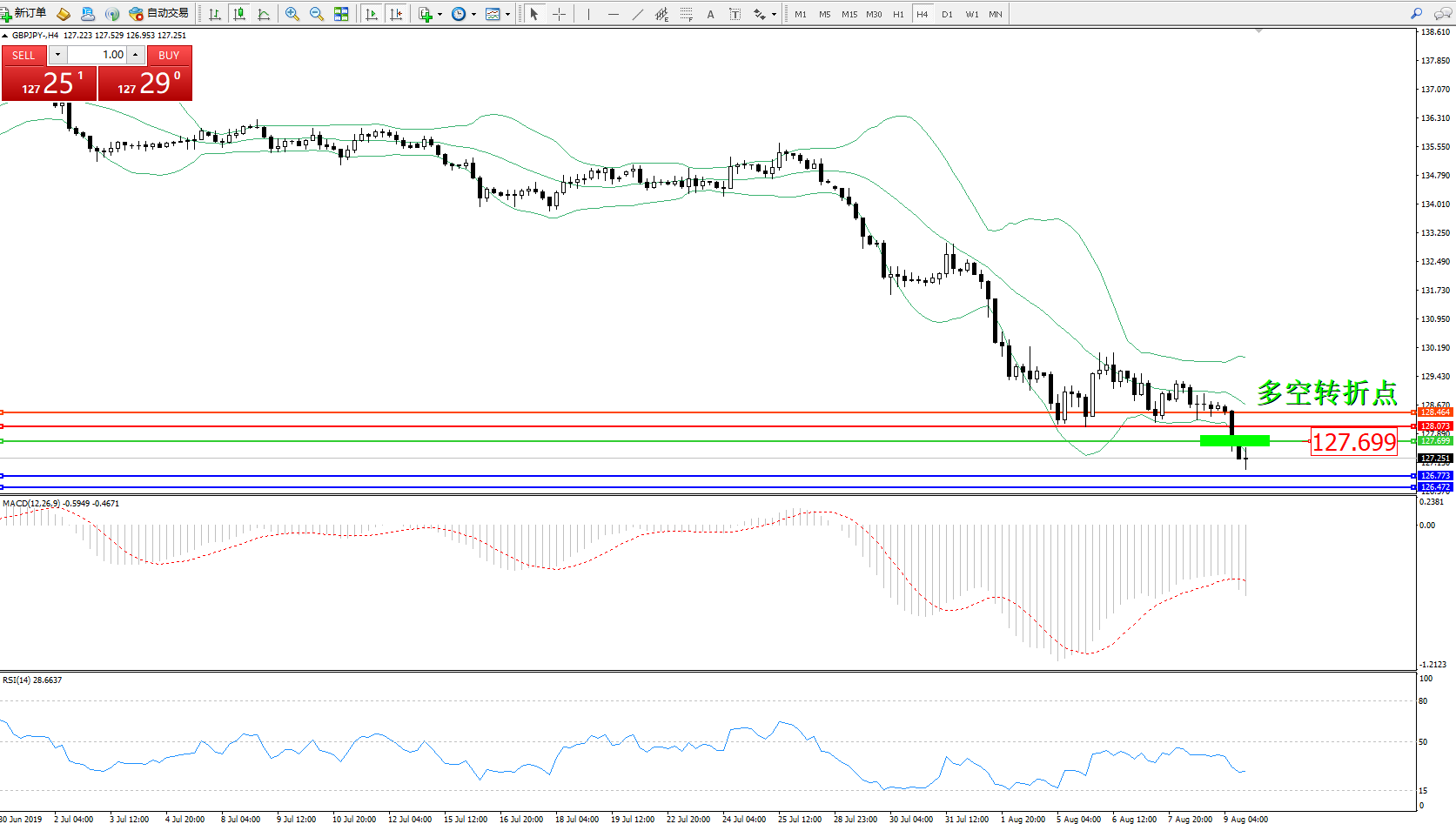 交易策略:127.699下方看跌,目标126.773、126.472