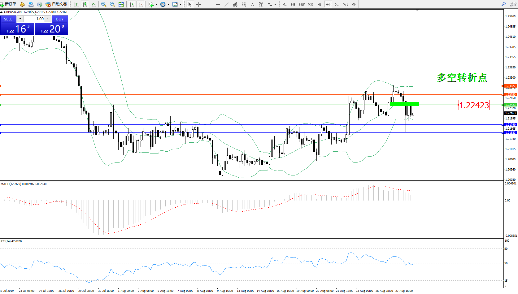 交易策略:1.22423下方看跌,目标1.21790、1.21533