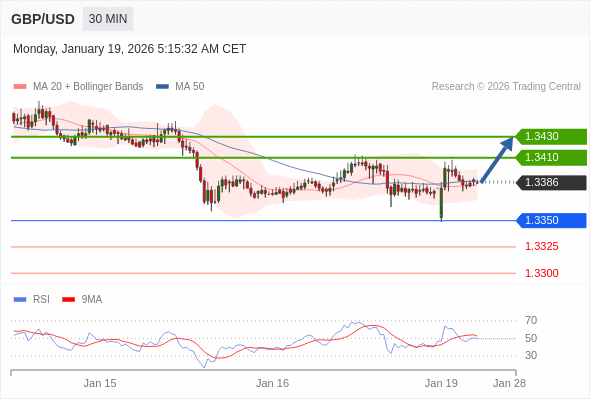 在 1.3350 之上,看涨,目标价位为 1.3410 ,然后为 1.3430 。