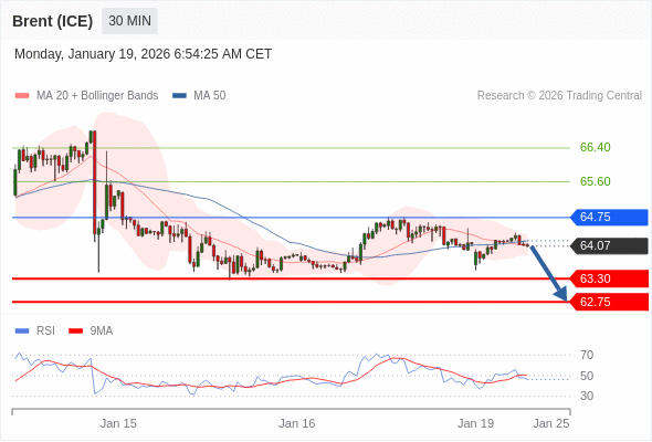 在 64.75 之下,看跌,目标价位为 63.30 ,然后为 62.75 。