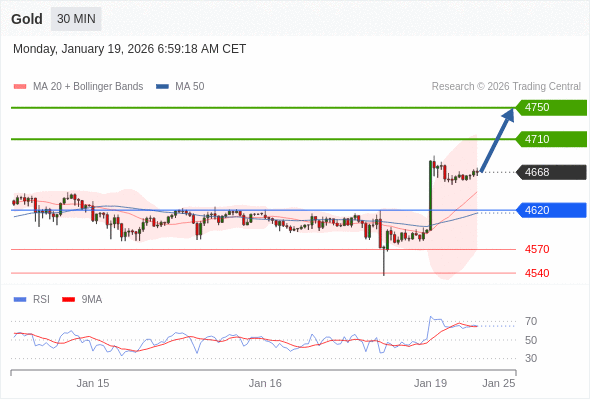 在 4620 之上,看涨,目标价位为 4710 ,然后为 4750 。