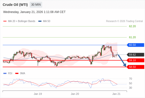 在 60.50 之下,看跌,目标价位为 59.10 ,然后为 58.50 。