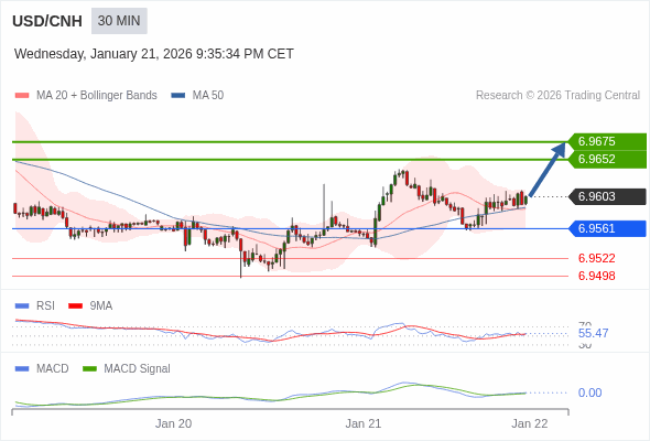替代方案: 在6.9561以下,期待6.9522和6.9498。
