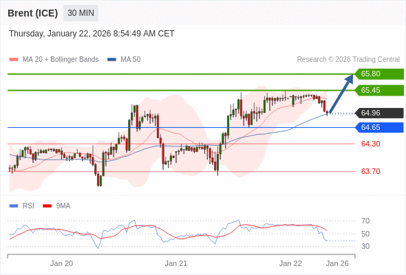在 64.65 之上,看涨,目标价位为 65.45 ,然后为 65.80 。