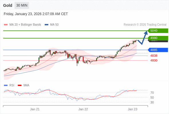 交易策略: 在 4885 之上,看涨,目标价位为 4980 ,然后为 5040 。