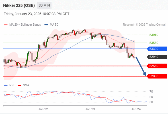 在 53300 之下,看跌,目标价位为 52540 ,然后为 52090 。