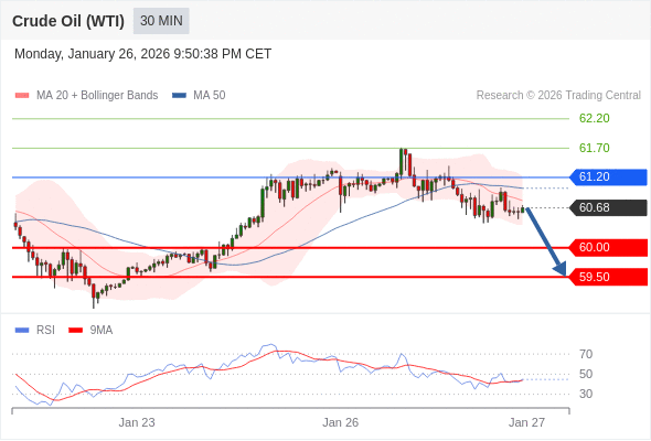 在 61.20 之下,看跌,目标价位为 60.00 ,然后为 59.50 。