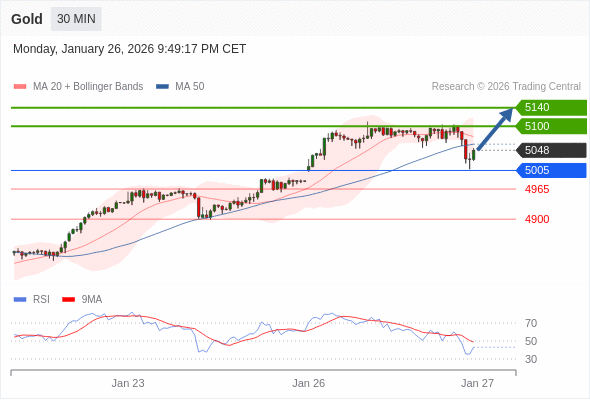 交易策略: 在 5005 之上,看涨,目标价位为 5100 ,然后为 5140 。
