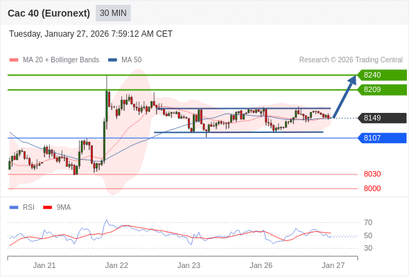 在 8107 之上,看涨,目标价位为 8209 ,然后为 8240 。
