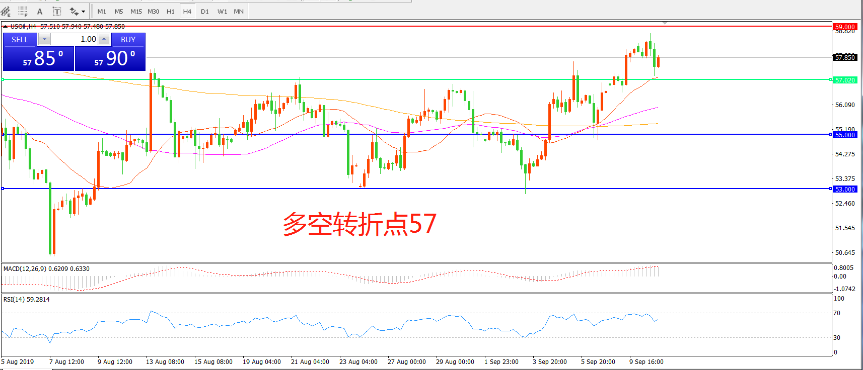 多空转折点:57.00