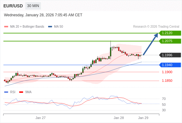 在 1.1940 之上,看涨,目标价位为 1.2075 ,然后为 1.2120 。