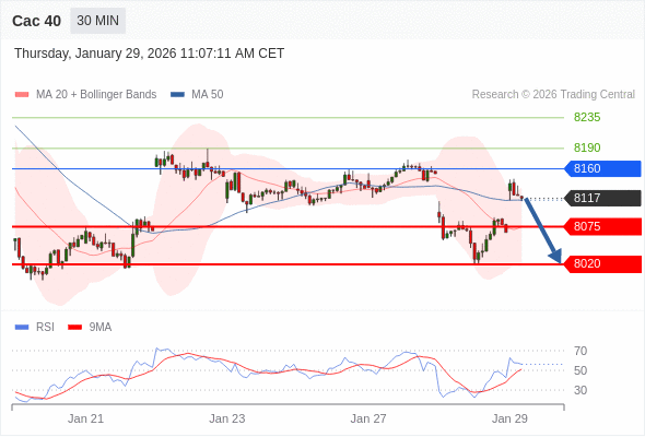 交易策略: 在 8160 之下,看跌,目标价位为 8075 ,然后为 8020 。