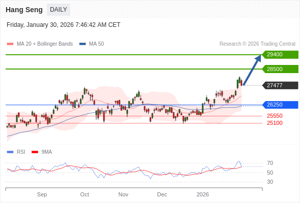 交易策略: 在 26250 之上,看涨,目标价位为 28500 ,然后为 29400 。
