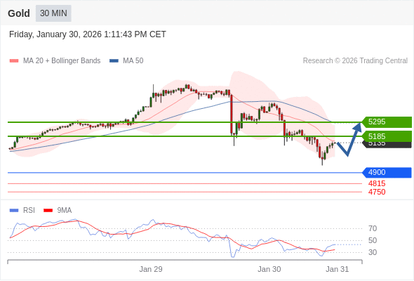 在 4900 之上,看涨,目标价位为 5185 ,然后为 5295 。