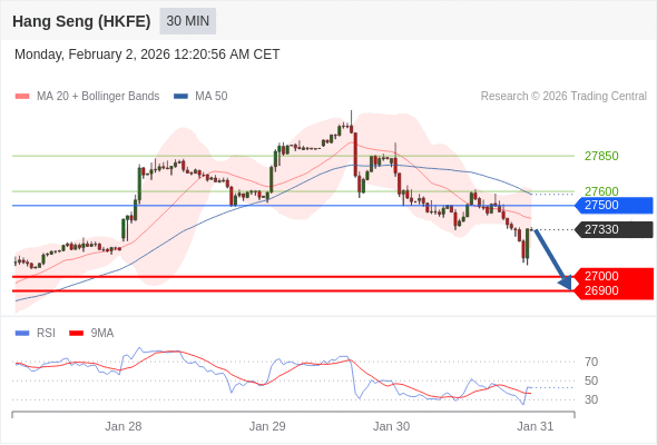 交易策略: 在 27500 之下,看跌,目标价位为 27000 ,然后为 26900 。