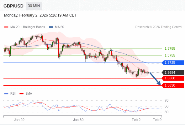 在 1.3725 之下,看跌,目标价位为 1.3660 ,然后为 1.3630 。