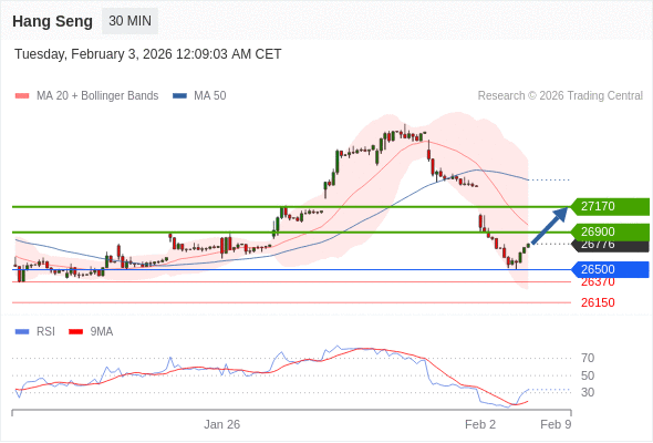 交易策略: 在 26500 之上,看涨,目标价位为 26900 ,然后为 27170 。
