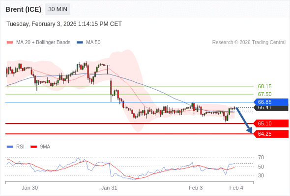 在 66.85 之下,看跌,目标价位为 65.10 ,然后为 64.25 。