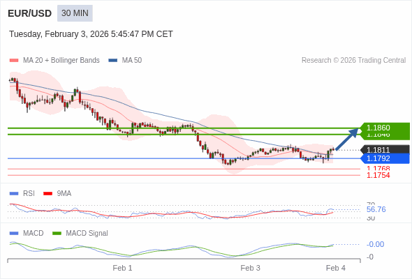 欧元/美元 当日内 : 看涨,当 1.1792 未被跌破。