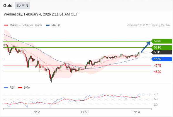 在 4880 之上,看涨,目标价位为 5110 ,然后为 5240 。