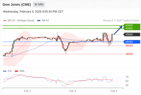 在 49390 之上,看涨,目标价位为 49900 ,然后为 50000 。