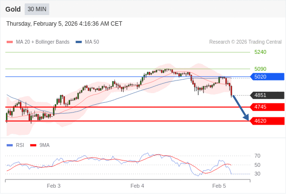 在 5020 之下,看跌,目标价位为 4745 ,然后为 4620 。