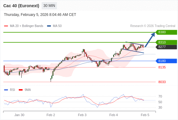 法国CAC指数期货 (Euronext) (G6) 当日内: 看涨。