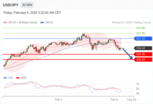 在 157.10 之下,看跌,目标价位为 156.35 ,然后为 156.10 。