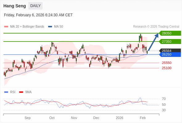 交易策略: 在 26250 之上,看涨,目标价位为 27350 ,然后为 28050 。