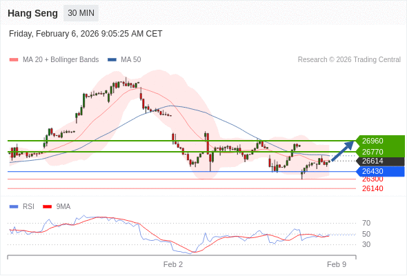 在 26430 之上,看涨,目标价位为 26770 ,然后为 26960 。