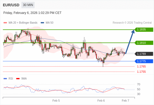 在 1.1775 之上,看涨,目标价位为 1.1810 ,然后为 1.1835 。