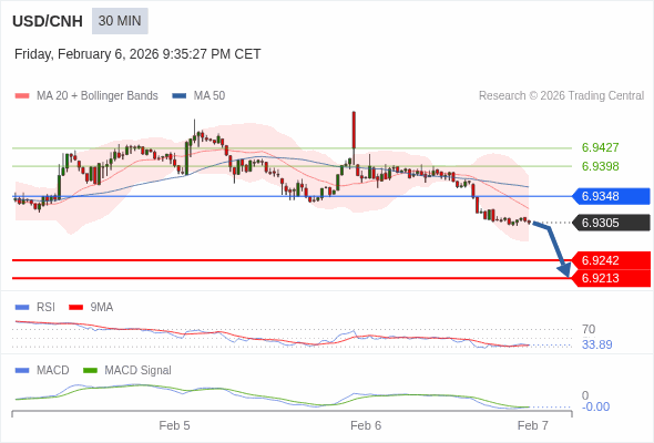 交易策略: 看跌,在 6.9348 之下。