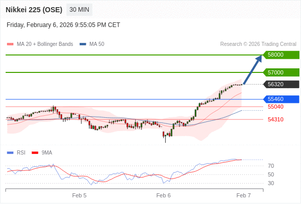 交易策略: 在 55460 之上,看涨,目标价位为 57000 ,然后为 58000 。