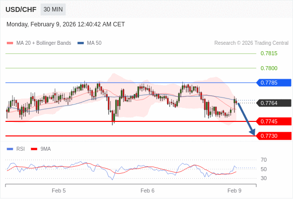 在 0.7785 之下,看跌,目标价位为 0.7745 ,然后为 0.7730 。