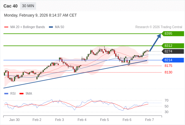 在 8214 之上,看涨,目标价位为 8312 ,然后为 8395 。
