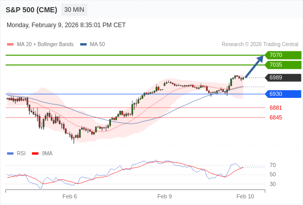在 6930 之上,看涨,目标价位为 7035 ,然后为 7070 。