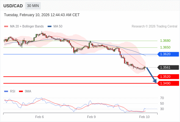 在 1.3620 之下,看跌,目标价位为 1.3520 ,然后为 1.3490 。