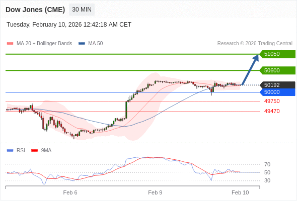 交易策略: 在 50000 之上,看涨,目标价位为 50600 ,然后为 51050 。