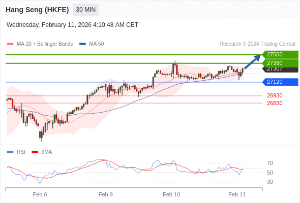 在 27120 之上,看涨,目标价位为 27380 ,然后为 27500 。